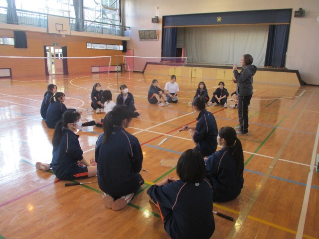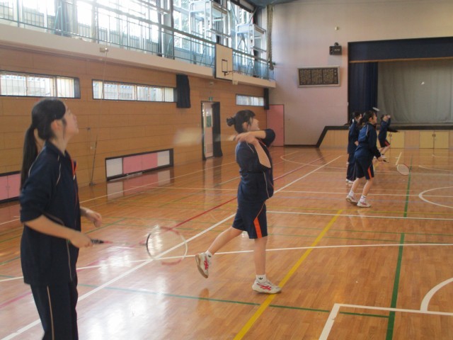 ダンスの授業が終わり、バドミントンの授業が始まりました。