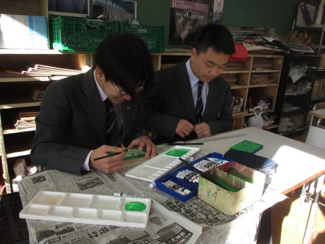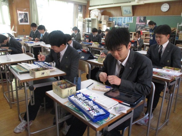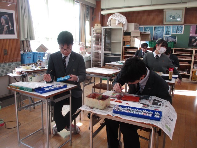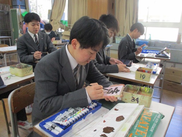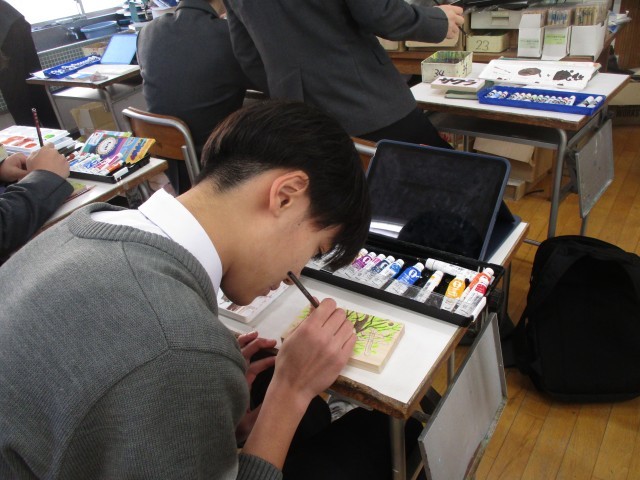 音楽の授業では卒業式の式歌の練習をしています。美術の時間には卒業制作「樹木名プレート」の制作に取り組んでいます。卒業までの1日1日を大切に。