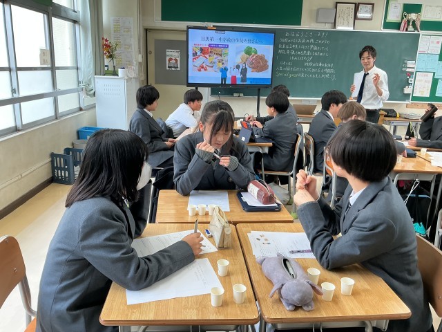 高等専修学校の先生から出汁や世界の食、様々な高校、課程等について学びました。