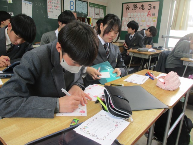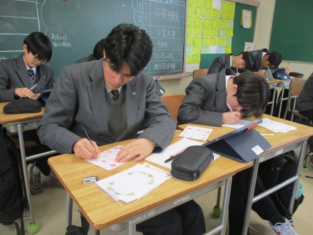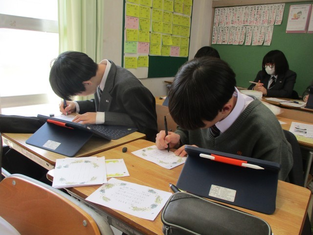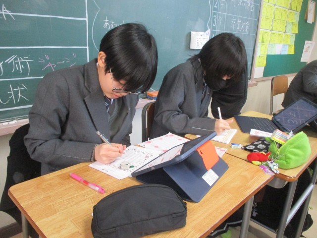 卒業まであと10日です。3年生は、第一中学校でお世話になった先生方へ手紙を書きました。3年間の思い出を振り返りながら、感謝の気持ちを一文字一文字に込めました。
