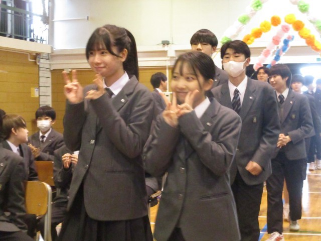 今日の午後、3年生を送る会が開かれました。1、2年生は3年生への感謝の気持ちを込めて、準備してきました。体育館があたたかい雰囲気に包まれました。