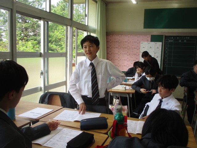 生徒会朝礼を受けて、学活では生徒総会の議案書討議を行いました。学年委員の司会のもと、各専門委員の活動方針、活動内容について討議をしました。自分たちの学校を自分たちの力でよりよい学校にしていくために、真剣に意見交換が行われました。