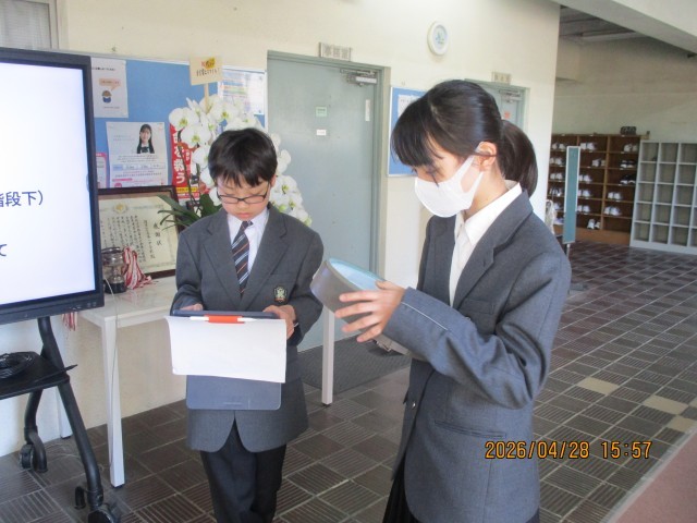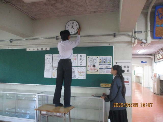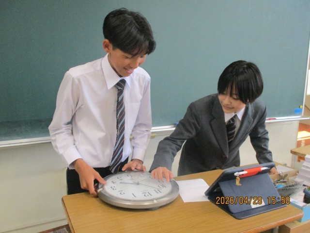 専門委員会のあと、生活委員が学校の時計の時間合わせを行いました。iPadの時計を見ながら、秒針まで時計の時間を合わせてくれました。時間を守って充実した学校生活を送りましょう。生活委員会のみなさん、ご苦労様でした。