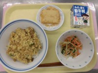 豆入りキーマカレー メキシカンサラダ くだもの(巨峰) 牛乳