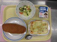 今日の主菜は「コロッケ」です。コロッケは、フランス料理の「クロケット」が訛ったものです。「クロケット」の語源は「クロッケー」というスポーツで使われる用具に形が似ていること、「カリカリした物」という意味のフランス語「クロッカー」から名付けられました。