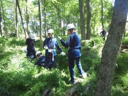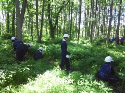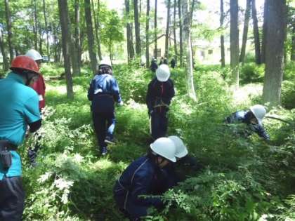 上手にノコギリを使って下草を刈っています