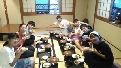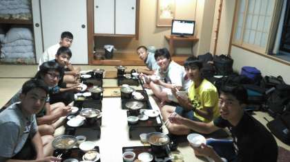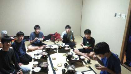 宿には予定時間より早く6時に着きました。一日動いていたので腹ペコです。みんなで美味しくいただきました。