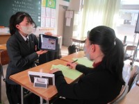 様々な立場の意見を英語で聞き取り、再度グループで情報を共有したあとで、地球にやさしい解決方法を考えます