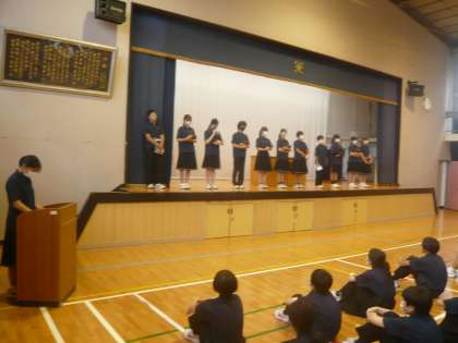 各委員会の委員長、生徒会長から活動報告が行われました。