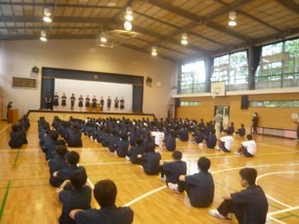 全校生徒が縦横まっすぐ整然と並ぶ様子、しっかり話を聞いている様子が素晴らしいと思いました。