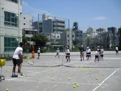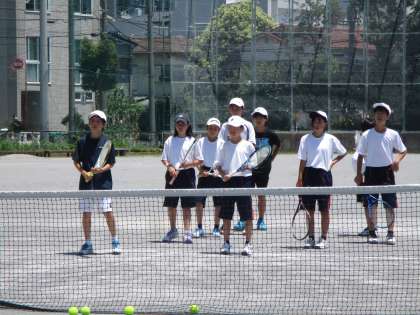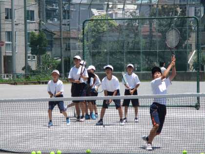 あいさつの声がさわやかです。頑張れ、テニス部!