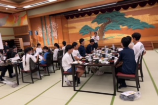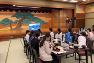 2日目の夕食は、大きな広間にて夕食をいただきました。長町中との交流がtvにて報道され、みんなで中継を楽しんで見ていました。また、スペシャルゲストの西野真理さんのステージも鑑賞しました。多くの方に支えられて一中の修学旅行が進んでいます。