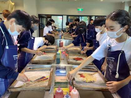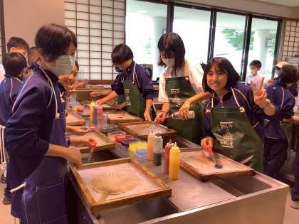 うちわに絵付けをしています。どれ一つ同じものがない世界に一つだけのうちわです。
