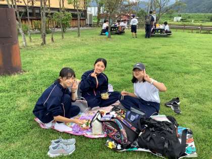 和紙のうちわ作り体験を終え、お昼ごはんの時間です。お腹いっぱいになった子どもたちは元気です。