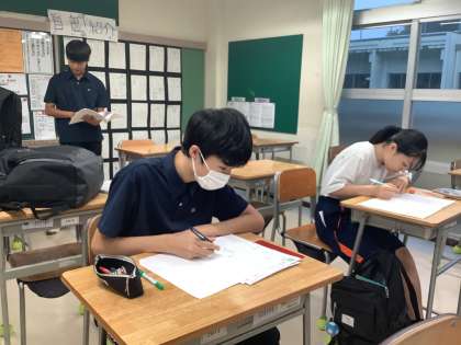 今日から期末考査が始まります。朝から自習にも力が入っています。頑張れ一中生!!