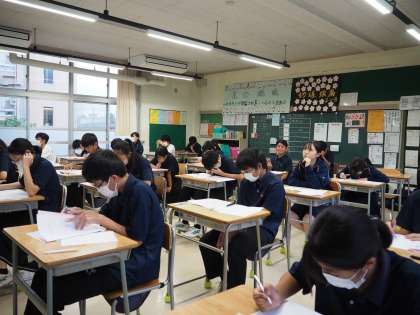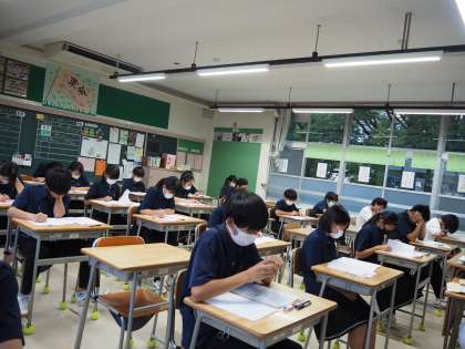 2年生は進路に対する意識が高まり、テストに一生懸命取り組む姿が見られました。