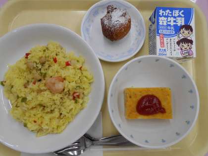 また、デザートは秋が旬のさつまいもを使ったドーナッツでした。今日もおいしくいただきました。