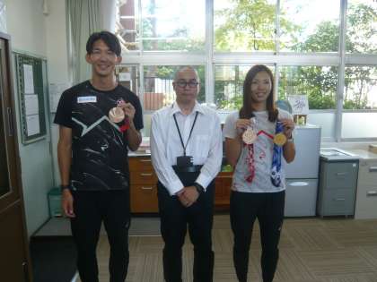 澤田優蘭選手、塩川竜平選手。世界選手権では金メダルでした!パリ五輪もみんなで応援しましょう!(世界選手権で4位以内でパリ五輪の出場枠を獲得となります)
