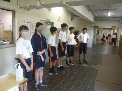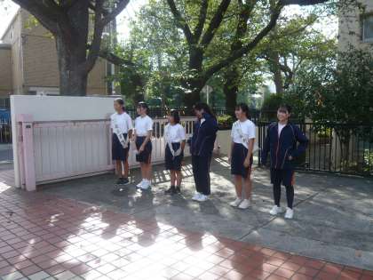 みんなが気持ちのよい挨拶をしています。さすが生徒会役員に立候補する一中生です。