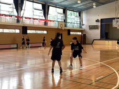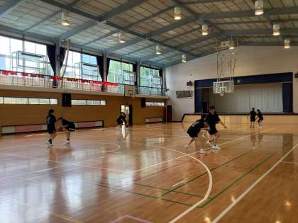 苦手としている正面からのディフェンスの基本練習を重点的に行なっています。