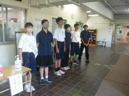 候補者、推薦責任者、選挙管理委員会の生徒が呼びかけ運動、演説に努めています。みんなでさらに、学校生活を過ごしやすい一中にしようと取り組んでいます。生徒会選挙当日まであと2日です!(写真は9月19日(火)の様子です)