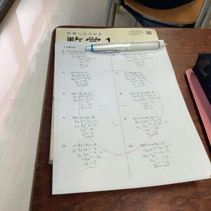 いろいろな方程式の計算。満点目指して頑張っています!