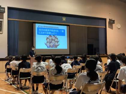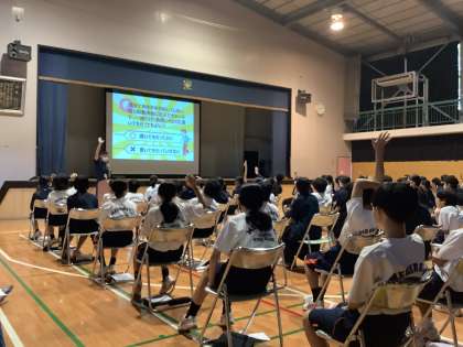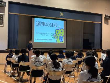 目黒区選挙管理委員会の方にクイズなどを交えながら、選挙について分かりやすく教えていただいています。