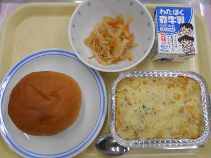 今日は全校でグラタン完食でした。おいしくいただきました。