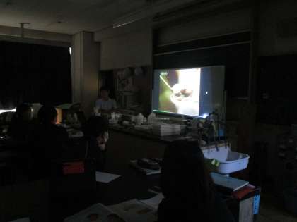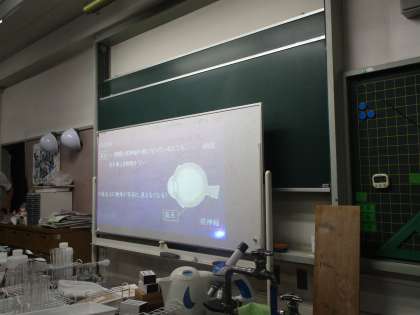 動物の目のつくりとはたらきを学習しています。のちの授業では実際にブタの目を解剖して、目のつくりを確認します。