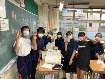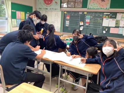 放課後の教室では、2年生が合唱コンクールのめくりプロの制作をしています。