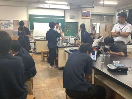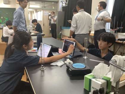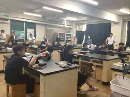 第一中学校は中学校理科部会の会場となり、本校の教員が1年B組で研究授業を行いました。単元は物質で、「いろいろな金属の密度を計測し、数値を共有する」というテーマの授業でした。目黒区の理科の先生方が20名ほどいらっしゃる中でしたが、生徒は普段通りに積極的に学んでいました。