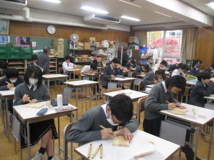 木彫レリーフの製作中です。ていねいに、慎重に彫り進めています。