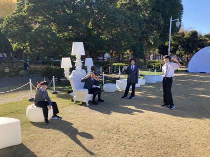 山下公園で昼食後の休憩中の生徒を見つけました。