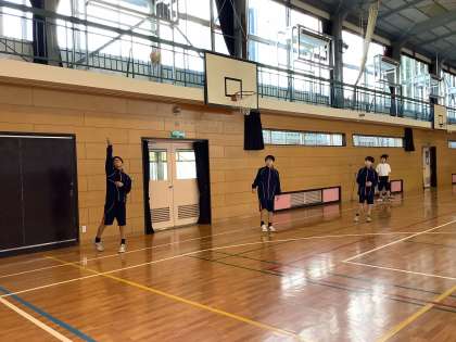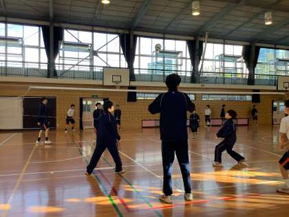 バレーボールの授業です。サーブやレシーブ、基本的なボールの扱いにも慣れてきました。