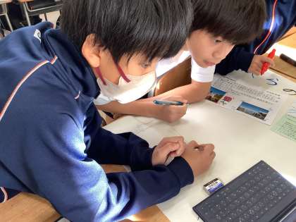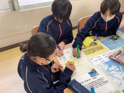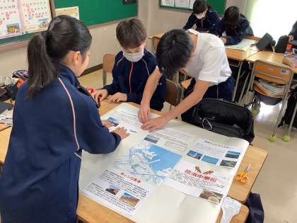 1年生は校外学習の事後学習として、班新聞の作成に取り組んでいます。班で記事を分担し、自分で学んだことや感じたことを分かりやすくまとめています。