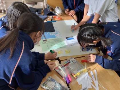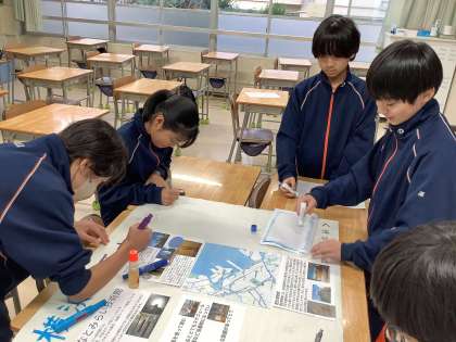 どの班も新聞のレイアウトを工夫し、イラストや写真を上手に利用して素敵な新聞を作ることができました。 協力し合う力が活かされています。
