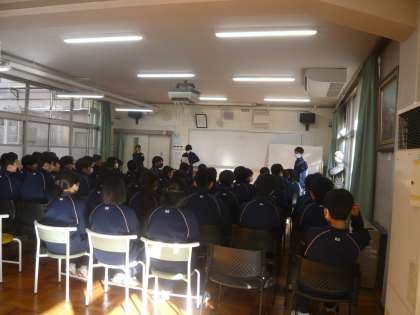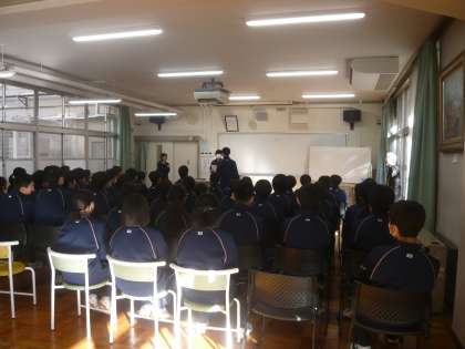 冬休みに入る前に学校生活の振り返りを行いました。姿勢も良く集中して、お話を聞く2年生。聞く姿勢が素晴らしいです。