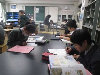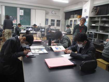 地層のボーリング調査から、地層の傾きを調べる学習をしています。