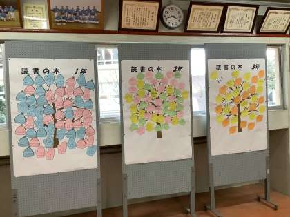 生徒ひとりひとりのお薦めの本が集まって、読書の木になりました。
