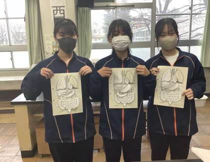 人の体のつくりについて学んでいます。次の授業では、それぞれの内臓の名前と働きをまとめていきます。