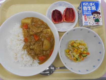 今日の果物は「ブラッドオレンジ」でした。果物と大きな括りでリクエストしてくれた3年生がいたので、今日はオレンジの中でも「ブラッドオレンジ」を選びました。