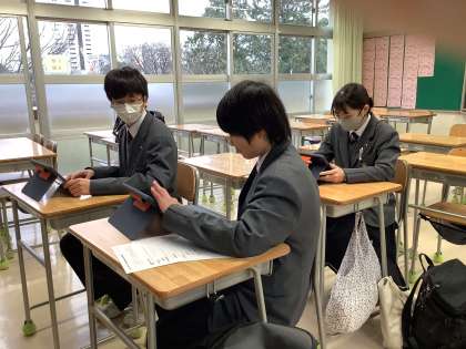3年生を送る会に向けて、1学年の実行委員が集まって準備を進めています。何をするかは当日のお楽しみに!