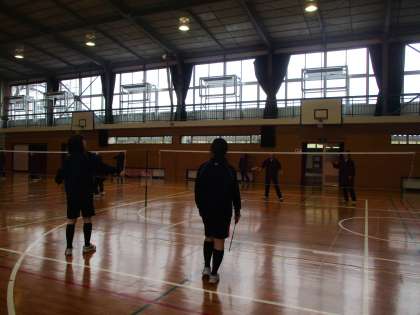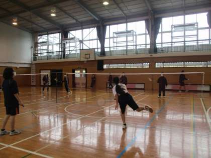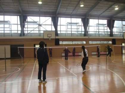 バドミントンの授業です。ダブルスでラリーの練習をしていました。前回よりも上達しています。