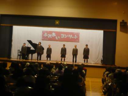 地域の方々のたくさんのあたたかいお気持ちが集まって、ふれあいコンサートを開催することができました。一中の合唱部、吹奏楽部も出演し、みんなで力を合わせ、普段の練習の成果を発揮しました。