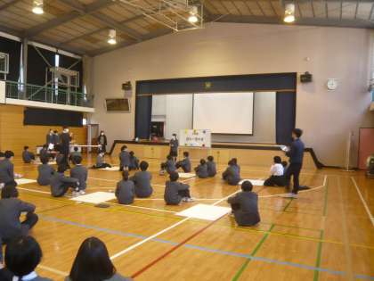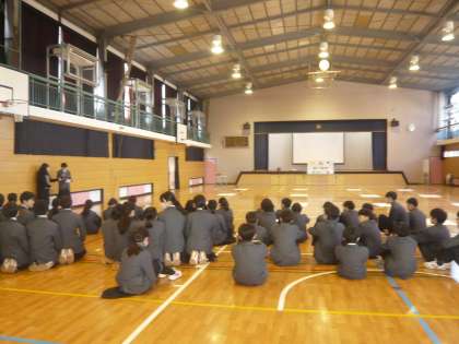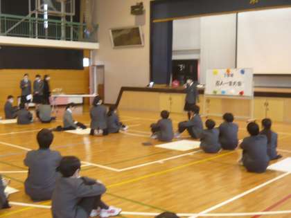 1年生の百人一首大会でも、国語係の生徒たちが会の準備、進行などを担当し、会を生徒達自身でつくりあげています。みんなで協力して、百人一首大会ができあがります。