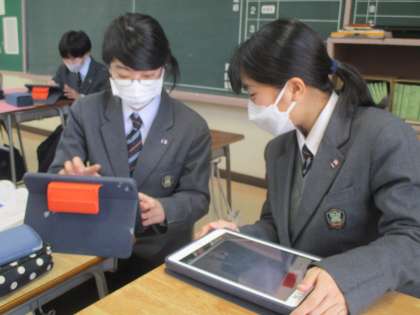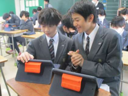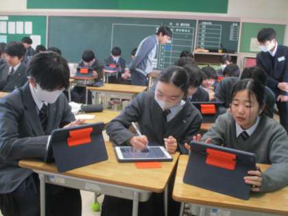 グループごとにテーマを決めてデータを収集し、統計分析をしています。主体的、意欲的に学ぶ1年生です。