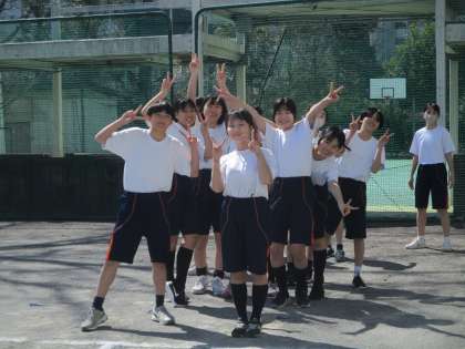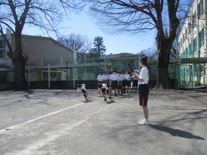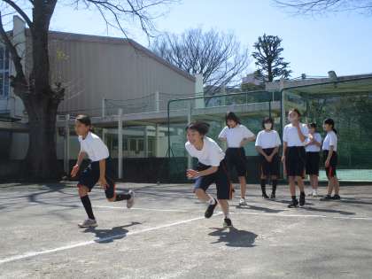 1年生女子も元気いっぱいです。50m走のタイムを計っていました。全力でダッシュし、最後まで駆け抜けました。