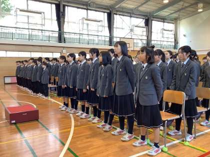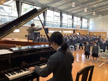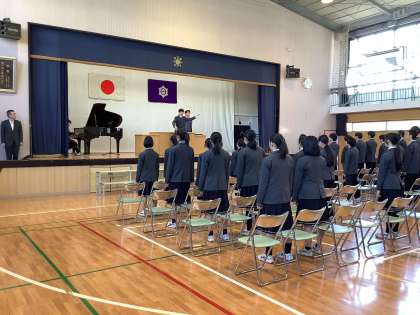 卒業式の全校合唱「大地讃頌」の練習をしています。音楽科の先生のアドバイスをよく聞き、みるみると良くなっていきます。