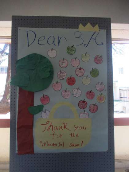 3年生へ感謝の気持ちを込めたメッセージカードを作りました。「3年生たち、みんなかっこよかった」「来年は自分たちも英語劇をやりたい」という声が聞こえてきました。