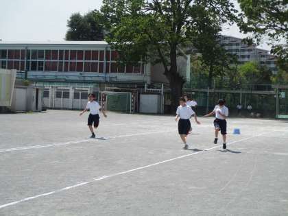 50m走のタイムを計っていました。「去年より速く走れるようになった!」と元気な声が聞こえてきました。成長著しい2年生です。